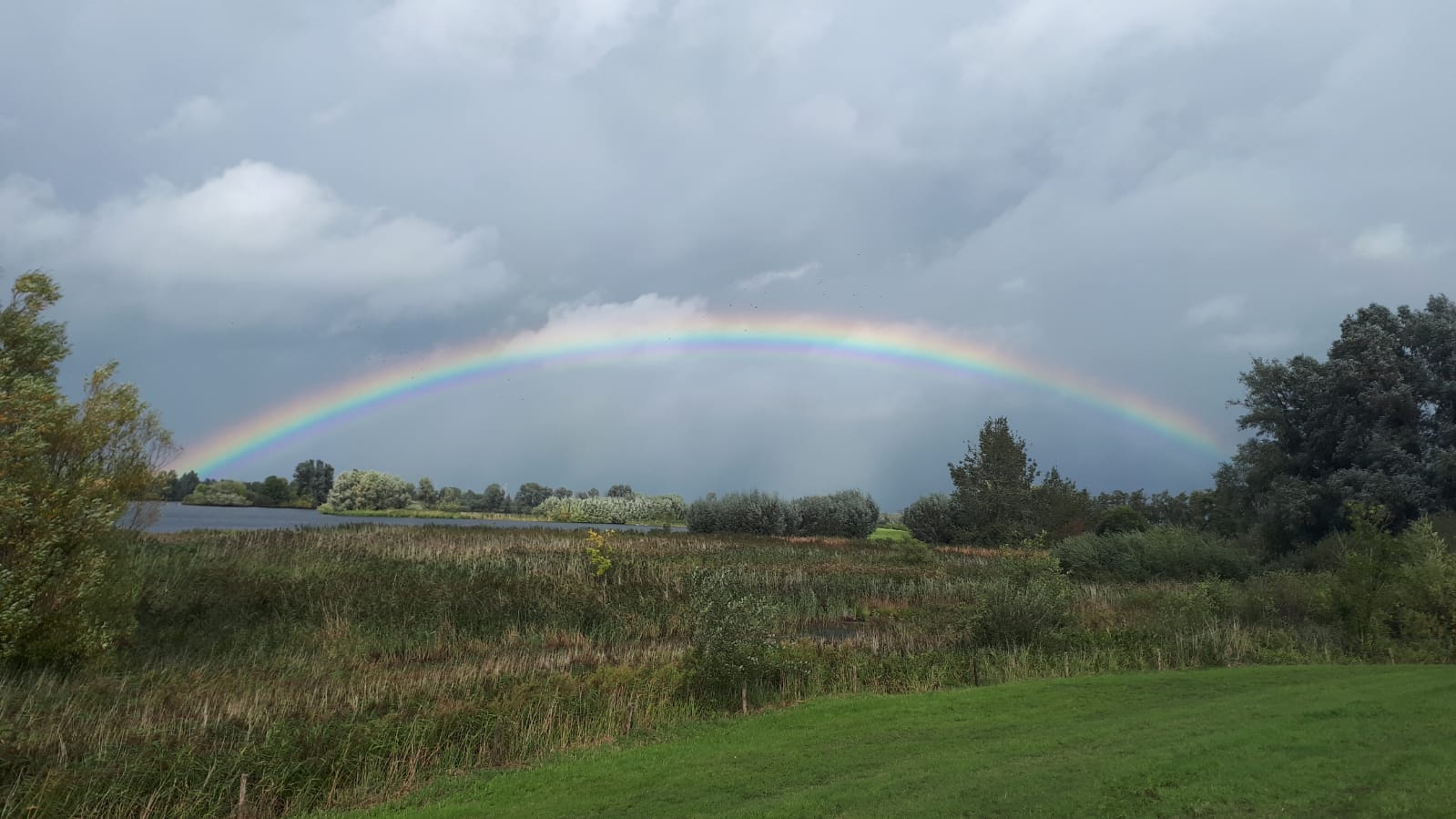 Een extra bijzonder element van deze middag was de schitterende regenboog. Een beeld van kleur en gevolg van vele regendruppels afgezet tegen een schijnende zon. Maar de regenboog heeft ook een andere betekenis: de Eeuwige Belofte aan ons mensen gedaan.